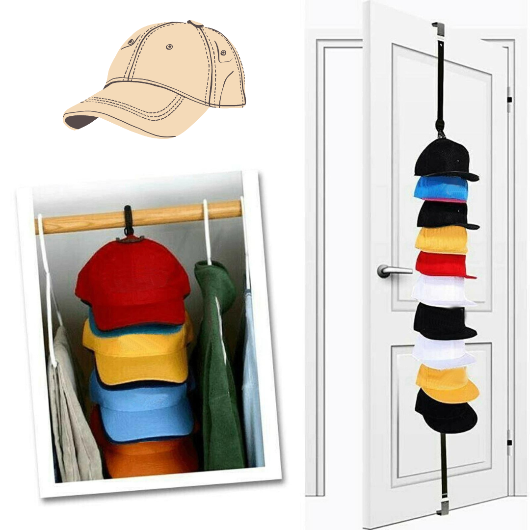 Skonsam för dina kepsar: Vårt innovativa kepshållare är speciellt utformat för att hålla dina kepsar säkra och förhindra att de deformeras. Genom att hänga dina kepsar istället för att stapla dem, kan du vara säker på att de behåller sin ursprungliga form och struktur.
